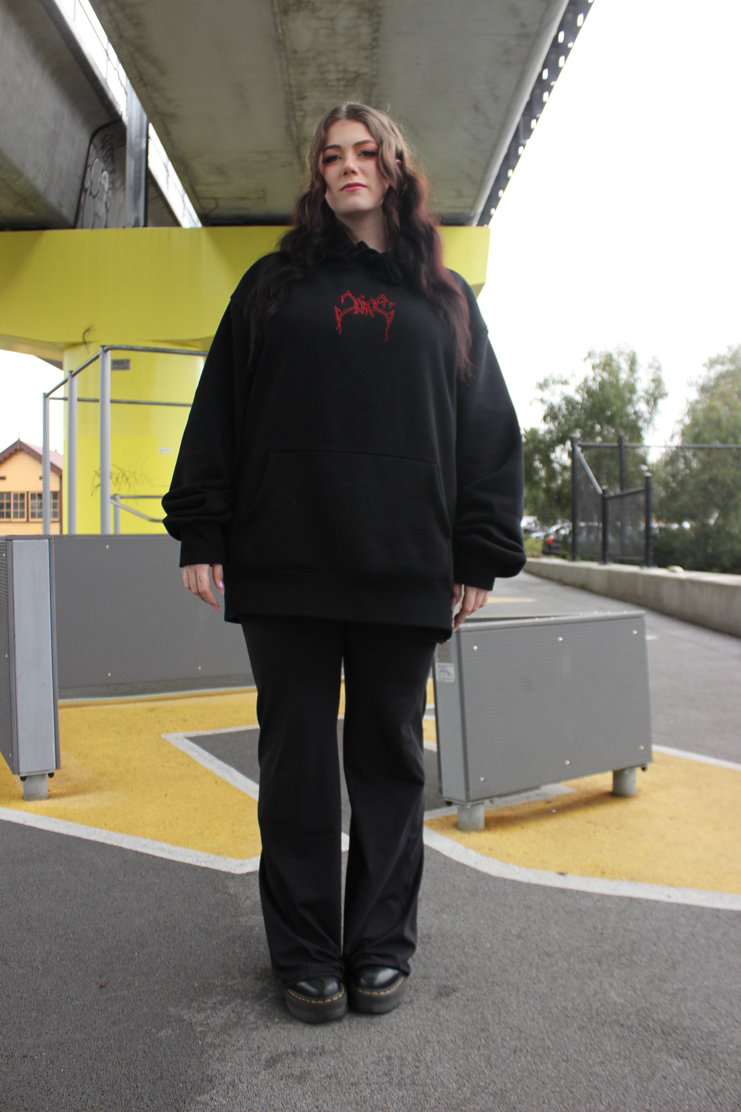 the JUICE drip hoodie features detailed embroidery on the chest and hoodie, screen printed art on a heavyweight 400 GSM CVC fleece. the blend of the hoodie 80% cotton and 20% recycled polyester. fits completely oversized and relaxed if you like it baggy. size up if you wanna swim on it, but honestly you'll be fine going true to size